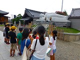 初めに萱津神社に訪れ、そこから旧鎌倉街道を歩くと、正法寺、妙勝寺、光明寺、実成寺といったお寺がありました。社会科で勉強した織田信長や豊臣秀吉もこれらのお寺に関連していると聞いて、子ども達も驚いていました。