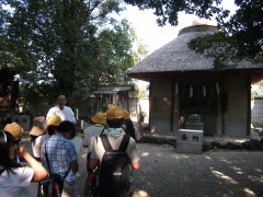 6年生の取材活動、2日目の前半は萱津神社です。漬け物の神社、縁結びの神社として知られる萱津神社の由来などを宮司さんに伺い、学習を進めました。特別に、昨年の香の物祭で漬け込まれた漬け物を試食させてもらうこともでき、有意義な学習となりました。萱津神社の皆様、ありがとうございました。8月21日に行われる香の物祭にも参加し、さらに学習を深めたいと思います。