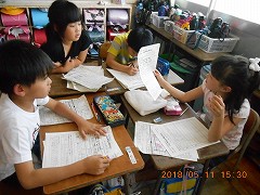 本日の1・2時間目の時間に、5/9(水)に雨で順延になった校区探検東南コースへ行きました。天気にも恵まれ、少し汗ばむくらいの陽気の中、3年生全員で一生懸命歩きました。商店街や神社、公園など普段何気なく通っている場所について勉強しています。 探検後には学級ごとに分かれ、それぞれが見つけた甚目寺の様子を確認しました。たくさんの甚目寺の人にとって優しいところを見つけることができたようです。今後、西や北の方にも探検に行き、甚小校区のことを調べていきます。