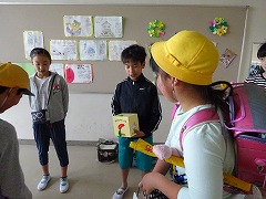 児童会の役員が中心となって、緑の羽根募金を行いました。今回集まったお金は、世界中で緑化を推進するための基金として使われます。環境問題ではよく「地球規模で考え、身近な地域のできることから活動しよう」と言われます。こんな活動を通して、地球環境について考えられる子に育ってほしいと思います。