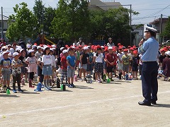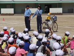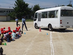 津島警察署から3人の講師をお迎えして、交通安全教室を行いました。2時間目に1~3年生、3時間目に4~6年生の2回に分けて行いました。低学年では、最初に横断歩道の渡り方を実際にやりながら、いろいろポイントを教えていただきました。次に、大型車の内輪差による巻きこみ防止について、実演をしていただきました。その後、トラックの死角について学び、自分たちが考えている以上に運転手からは見づらいことを体感しました。大変暑い中でしたが、警察署の方には2時間、熱心にご指導していただきました。今日学んだことを忘れずこれからも交通安全に心がけてほしいと思います。