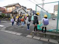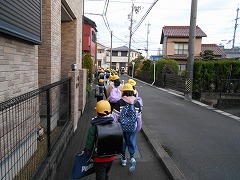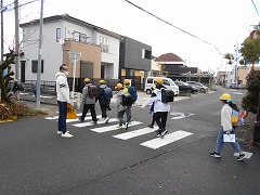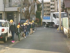 集団登校で、通学路を黄色い帽子が並んでいると車の運転手からはよく目立ちます。きっと注意して近くを通っていただけます。ところが、遅れて登校した子が一人で歩いていると、気づかれにくいです。そして、遅くなって焦っていると飛び出しの危険も高まります。特に低学年の児童には、集合場所に行って、班の他の子が出発した後なら、一人で学校に来ずにお家に一端戻って、お家の方と一緒に登校するよう指導しています。安全な登校のために、ご理解とご協力をお願いします。