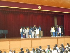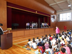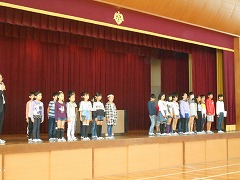 今日は、朝礼で後期の学級委員、代表委員の認証をしました。名前を呼ばれたときの返事を聞いていてもさすがクラスの代表だなと思いました。どの子もやる気の伝わるとてもよい返事が返ってきました。その後「クラスのみんなを思いやり、協力できる子」になってほしいという話をしました。高校卒業後は4割、大学卒業後でも3割の人が5年以内に最初に就職した職場を離れるそうです。その理由の中で人間関係の行きづまりが少なくありません。仲間と協力できることは今後どんな職場で働くことになっても、教科の学習と同じくらい大切であるということを話しました。職場では当然、立場も年令も、期待される役割も違います。考え方も随分開きがあるでしょう。小学校生活での異年齢活動は、毎日の通学班での登下校があげられます。その中でもそれぞれの立場や考えの違いを乗りこえて、みんなが少しずつ我慢しながら仲良く登校してほしいことを話しました。そして、同学年仲間の集まりであるクラスなら今日認証された学級委員を中心に、ぜひみんなが協力できる「ワンチーム」になってほしいと願っています。