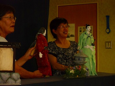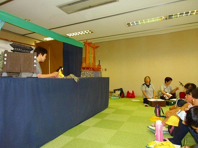 手作りの人形や背景、そして、一団の人同士が忌憚のない意見を言い合っている様子を見て、子どもたちは驚いていました。互いの信頼関係のうえに成り立っているのがよく分かりました。9月末には、本校にお招きして、完成された源氏節を見せて頂くことになっています。今からとても楽しみです。