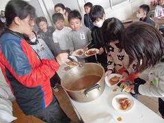 2月2日(木)方領大根を食べました。収穫した大根はとても立派に育っていて、子どもたちは驚いていました。地域の特産物について、おいしく楽しく学ぶことができました。