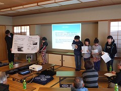 3月12日(日)に新居屋防災センターにて、地元の有志の方々が中心となって活動している「福田川をきれいにする会」(仮称)の研究会で、あま市役所の方々、地元の町内会の方々、消防団、自主防災会の方々に向けて、甚目寺小学校4年生が発表しました。甚目寺小学校4年生は、ESDで環境をテーマに1年間学習を進め、福田川についても調べました。そのことを「福田川をきれいにする会」(仮称)の方々とお話しする機会があり、その研究会で発表する機会をもらいました。