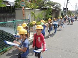 総合の授業として、地域のまち探検に出かけました。「人にやさしい町づくりとは何か?」をテーマに、町の特徴や町の人の様子を調べました。どんなところがみんなが生活しやすいように工夫されているかを一生懸命、汗をかきながら探しています。慣れ親しんだ道でも今まで気づかなかったこともたくさんあり、新しい発見ができました。