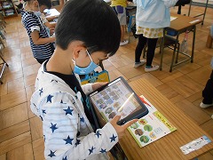 今日、1年生が生活科の時間にタブレットをもって、校庭に出かけ、虫や花などを撮影していました。あさがおの観察でも利用しているようです。写真に残すことで、生長段階を日付と共に記録できることが利点です。拡大してくわしく観察することもできます。ただし、従来行っていたノート等への手書きのスケッチも学習には欠かせません。自分の手でスケッチすることで、細部にまで目をこらす観察眼を身に付けることも大切な学習です。