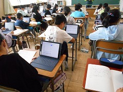 一人1台ずつタブレットが配布され、今、教員も研修を順次行いながら、どんな利活用ができるか試行錯誤している状況です。