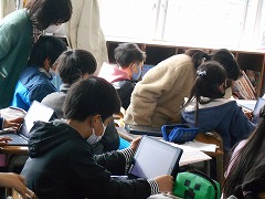 タブレットを利用するようになって、以前はせいぜい班で意見交換するぐらいでしたが、今はクラスのどの子の作品や作文もタッチ一つで自分の手元に拡大して、見たり読んだり、それに対するコメントを返したりもできます。