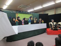 6年生は、総合の時間に進めている「甚目寺歴史・文化調査隊」の学習の一環として、甚目寺で説教源氏節を演じている「もくもく座」の皆さんにお越しいただき、説教源氏節を鑑賞しました。語り手の方の軽妙な語り口と、人形の素晴らしい動きに、子どもたちもどんどん物語の世界に引き込まれていました。終わりには人形や道具などにも触れさていただくことができました。甚目寺で受け継がれた芸能をしっかりと味わうことができました。もくもく座の皆さん、本当にありがとうございました。