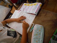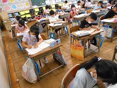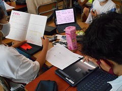 2年生は漢字の間違えを直していました。見ると担任が一人一人丁寧に朱書きで直してくれています。手間ひまかけて丁寧に指導してくれています。6年生は、タブレットを使って、班で発表する内容をまとめていました。教科書では載っていない詳しい内容が書かれていました。夏休み前ですが、どの教室でも充実した授業が行われていました。