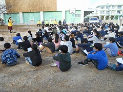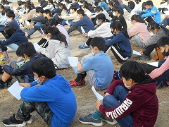 贈呈式では6年生全員で「種をまこう」を朗読し、人権擁護委員の近藤様にミニ人権教室もしていただきました。とても心にしみるお話しを聞かせていただくことができました。会の最後には、人権キャラクターのまもる君、あゆみちゃんを交えて、全員で記念写真を撮りました。