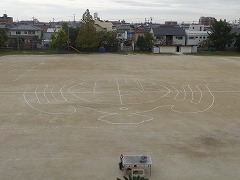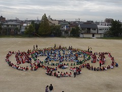 海部市制10周年を記念して、各小中学校で航空写真の撮影が行われています。少し天候が心配でしたが、なんとか本日予定通り撮影を終了しました。運動場いっぱいに校章をつくっての撮影と、全校写真、クラス写真を撮りました。また、時期が来ると写真等の販売の案内があると思います。
