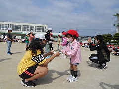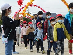 1時間目に1年生を迎える会を行いました。例年は体育館で行っていますが、コロナウィルス感染予防のため、今年は外で行いました。みんなの拍手・手拍子で入場した1年生、とてもうれしそうでした。