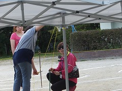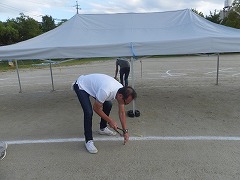 5・6時間目を利用して、5・6年生の力を借りながら、運動場の石拾いや整地、テント張り、入退場門の設置・器具や机・イスの準備などを行いました。16時過ぎからは保護者の方やおやじの会の方にもテントの固定などを手伝っていただきました。おかげさまで、すっかり運動会モードになりました。ありがとうございました。