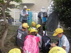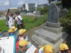 今日の取材は遺跡チーム。子ども達は、小町塚、晴明塚、飛行場址、法性寺を順に回りました。ガイドさんや住職さんからは、遺跡にまつわる人物の話や伝説、当時の町の様子などを教えていただきました。見学を終えた子ども達からは、「実際に見てみると、遺跡って思ったよりも小さいんだね」「法性寺と甚目寺観音に関わりがあるなんて知らなかった」などの声があがり、多くの発見があったようです。