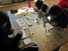 4年生は、七宝焼の先生や、アートヴィレッジの方に来ていただいて、七宝焼体験を行いました。あま市だけでなく、日本を代表する伝統工芸品である七宝焼を作ることのできる貴重な機会。子どもたちはとても楽しみにしていました。実際に釉薬を塗る作業では、絵柄が崩れないように、慎重な作業が必要です。職人の方々のすばらしい作品の裏には大変な技術や努力が隠されていることを知ることができました。