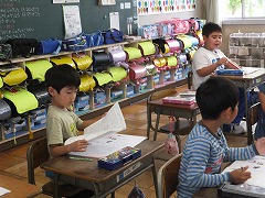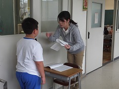 4時間目には、各クラスで通知表が配られました。1年生も初めての通知表を一人一人担任の先生より受け取りうれしそうでした。自分のことについては、思った以上にわからないものです。教科の成績だけでなく、行動面や担任の先生が心を込めて書いてくれた所見もしっかり目を通して、自分の長所を知り、後期に向けて意欲を高めてほしいと思います。