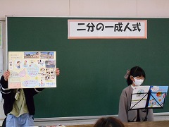 今日から、愛知県もコロナまん延防止措置が解除となり、感染防止のため延期になっていた1/2成人式をやっと行うことができました。感染対策のため、前・後半の2部制で人数を抑えながら、比較的広い特別教室で実施しました。4年生全員が完成したドリームマップを見せながら、将来の夢について語りました。