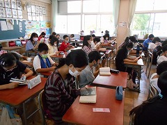 梅雨入り宣言後の梅雨の中休みか、晴れの日が続きます。その分、気温が上昇し、連日、暑い日が続きます。午前中の出張前に、朝読書の様子をぐるっと見回りました。毎日の習慣は大きいです。どこの教室もとても静かでした。どの学年も本の世界に浸れる児童が増えてきているように感じました。1日わずか15分ですが、読まないと何かしっくりこない子、一日が始まらないなと感じている子も多くなったと思います。本は心の栄養にもなるし、知識の宝庫です。小学生のうちに、ぜひ、本好きになってほしいと思います。一生の財産です。