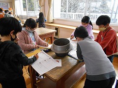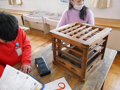 まだ、自分の子供の頃には使っていなかったけれど、おばあちゃんの家にはあったかなと思う懐かしい道具がたくさんありました。どの子も興味深げに、実際に手に取って、昔の人の暮らしぶりに思いをはせていました。今は、便利な電化製品にどれも置きかわっていますが、寒い冬には火の元に自然に家族が集まってきた時代が懐かしくもあります。