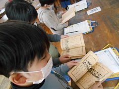 今日の午前、美和歴史民俗資料館の近藤さんに昔の道具をもってお越し頂き、3年生に出前授業をしていただきました。