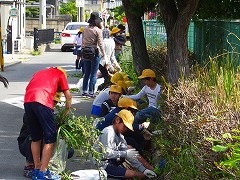 5月2日(月)ゴールデンウィークの合間の登校日。五月晴れの気持ちよい朝に、クリーンクリーン活動を行いました。暖かくなり草が勢いを増し始めており、校庭にはたくさんの草が生えていました。全校児童と参加していただいた保護者の方々で約1時間ほど草取りを行いました。今年もたくさんの草が取れて、45リットルサイズのゴミ袋162個分の草が取れました。