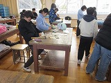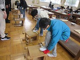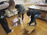 4年生がのこぎりを使って木を思いのままに切り、組み合わせたり、色を付けたりして思い思いの作品作りに取り組んでいます。学校支援ボランティアの皆さんに見守られ、落ち着いた中で、のこぎりやかなづちを安全に使うことができています。ご協力ありがとうございます。