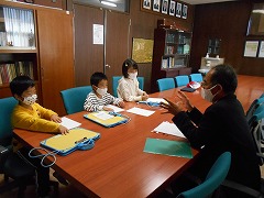 今日は、国語の授業の一環で、1年生の子が校長室までインタビューにやってきました。時間がかかる子もいますが、少しずつ文字も書けるようになっています。話もしっかり聞くことができました。