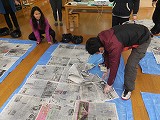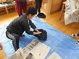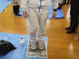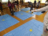 本日校内教員研修で、嘔吐物処理の実習を行いました。近頃ノロウィルスのような感染力が強いウィルスが登場し、以前とは違った嘔吐物処理状況となっています。正しい処理の仕方を学び、感染を抑えることができるよう、擬似的嘔吐物を用いて、実際の処理の仕方を学びました。写真を見ると黄色いものが見えますが、これは疑似嘔吐物です。今回は、コーンスープを使いました。新聞紙を一面に敷いていますが、これに0.1%の次亜塩素酸ナトリウムをたっぷりかけます。そして10分放置して、ゴミ袋に捨てます。これを2回繰り返します。処理担当者には、二重のビニル手袋やマスクをしてもらって処理を行い、最後は足まで殺菌します。なかなか大変な作業です。こうならないためにも、体調が悪い場合は早めの対応が大切だと思いました。