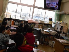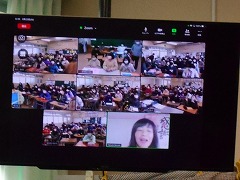 今年になって始まったハッピートーク朝礼。代表の池崎さんは、先日中日新聞でも紹介されました。ご覧になった方も多いかと思います。今朝は新しい企画で沖縄県の波照間小学校とオンラインで交流をしました。甚目寺小学校からは、5・6年生がそれぞれのクラスで学校自慢をしました。波照間小学校は地域や学校の様子の紹介をクイズ形式でしてくれました。