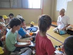 その後は、きれいにする会のみなさんと福田川へ移動し、福田川に生き物はいるのか、ゴミの様子はどうか、川辺の自然の様子はどうかなどと調査を行いました。水質検査も子どもたちの手で行いましたが、残念ながら福田川の水質は汚れが多いという結果でした。また、地域に住む森さんから昔の福田川の様子についてお話を聞くこともできました。 暑い中、一緒に活動していただいた福田川をきれいにする会のみなさん、森さん、本当にありがとうございました。
