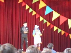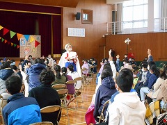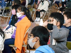 コロナ対策のため、例年と異なり、本校体育館で3部制で2学年ずつ交替で鑑賞しました。演目は、劇団パホーマンスラボによる「クラウンサーカス」です。テンポのよい音楽に合わせて、楽しいパホーマンスを演じてくれ、どの子も自然に笑顔になりました。途中、飛び入りで演技に参加した児童や先生方がどなたも皆さん演技達者な方ばかりで、場を盛り上げていました。換気をしながらの鑑賞でしたが、寒さも忘れ、あっという間の50分でした。やはり本物は違います。