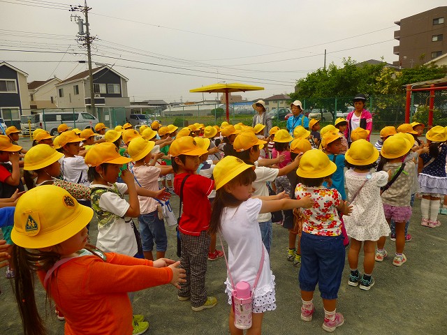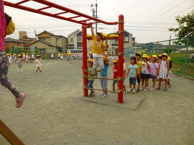 今日は学校の南側へ探検に出かけました。最後に到着した須原公園は、とても広く、たくさんの友達といろいろなことをして遊べました。ぶらんこやうんていに並ぶ子どもたちは、しっかりと順番を守って並ぶことができていました。整列も早くでき、団体行動に慣れてきたようにも思います。