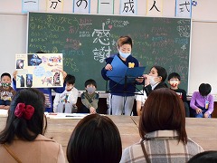 予想はしていましたが、予想以上に多くの保護者の方にご参観頂き、ありがとうございました。ご両親でおみえの方や、中には祖父母らしき方もたくさんみえました。それだけわが子や孫の授業参観・1/2成人式を心待ちにされていたのだなと感じます。