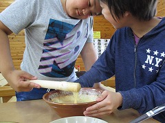 22日~23日にかけて、1泊2日で旭高原少年自然の家にてキャンプを行いました。1日目は、創作活動(myスプーン作り)と野外炊飯、キャンプファイヤーをし、2日目は、元気村までウオークラリーをした後、体験学習として五平餅づくりや自然薯すりをしました。2日間の共同生活の中で、自然のすばらしさ、友達のよいところ、家族への感謝の気持ちを再発見しました。この体験で深まったきずなをこれからの生活にぜひ生かしてほしいと思います。
