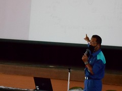 3年生が、あま市の安全安心課の方を講師にお招きし、防災出前授業を行いました。あま市の特徴、地震の際の液状化が心配な点などを画像や映像を使って、教えていただきました。暑い中ですが、ありがとうございました。