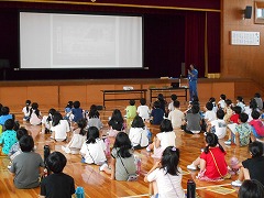 5年生は、明日から1泊2日で旭高原自然の家で野外活動を行います。今日は、休み時間を利用して、実行委員の子が最終リハーサルをしていました。見ていてもみんなのわくわく感が伝わってきました。