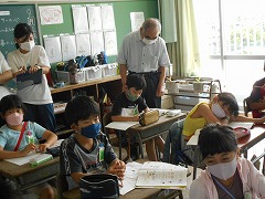 今日から全員が、ランドセルでの登校に戻りました。PTA校外生活委員会の皆様、生活委員会の子、あいさつ運動ありがとうございました。連休の狭間ですが、2時間目に3年生の教室で、授業力向上のために、鈴木公司先生をお招きし、研究授業を行いました。