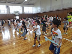 3時間目に、体育館で5年生が3年生に甚目寺カッポレのふり付けを教えていました。毎年、中学年が運動会で踊るようです。3年生は見よう見まねでしたが、なんとなく雰囲気はつかんだようです。3か月余りが過ぎようとしていますが、2学年での交流がとても盛んな学校です。下級生に教えることで、教える側の上級生の成長にもつながることを期待したいです。