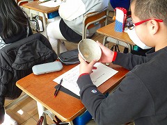 今日は、3学期に行われるあま市ものしりジュニア検定に向けての勉強会が行われました。あま市から2人の講師の方がいらっしゃって、あま市の弥生時代から現在に至るまでの歴史や文化について教えていただきました。6年生は、総合学習で甚目寺の歴史や文化を学んでおり、甚目寺に関しては詳しいのですが、美和や七宝についてはこれから勉強して臨むことになります。100点満点をめざして、これからの勉強を頑張って下さい。