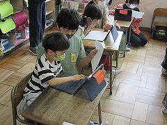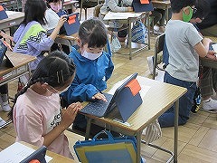 ゴールデンウィークが終わり、元気な子どもたちが学校に戻ってきました。再スタートです。1年生の教室では、一人一台端末、タブレットが授業で活用できるようにと6年生の力を借りながらログイン作業を行いました。操作方法をアドバイスする6年生の姿に優しさとたのもしさを感じました。2年生は、各自がタブレットを活用して1年生との『なかよし会』の準備中です。1年生も1年後には・・・成長が楽しみです。モラルを守り正しく判断して、タブレットを有効に活用できる力を身につけさせていきたいです。