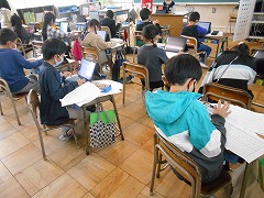 甚目寺小学校では、生活・総合発表会を今月26日に行います。今、多くの学年でそのための資料作りや発表に向けての原稿作成、練習が行われています。1年生でもタブレットを活用しながら自分のテーマの発表に向けてがんばっています。個人やグループで調べ、まさに個別最適な学び、協同的な学びが行われていました。ただし、そういった授業は時間と労力と自覚を必要とするため、いつもいつもは難しいです。