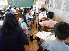 4年生が、割る数が、2けた、3けたのわり算の筆算を学習していました。とても難しいです。仮に立てた商がオーバーしたり、足りなかったりして根気のない子は面倒がってしまいます。たてのラインをきちんとそろえること(学習の丁寧さ)やとりあえずたてて計算をはじめること(試行錯誤)ができる子が、よくできます。いくつかの問題をやっていくうちに、だいたいどんな数を商にたてればよいかに気づくセンスも問われます。(教え始めたら、写真を撮り忘れました)
