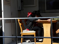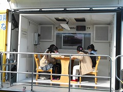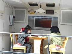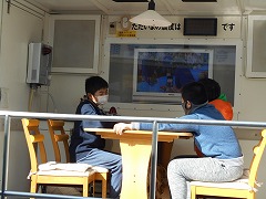 今日、甚目寺小学校にも起震車「なまず号」がやってきました。5時間目に5年生、6時間目に6年生が体験をしました。4人ずつ交替で、最大で震度7のゆれを体験しました。最初は余裕で座っていた子も、最後は机にしがみついていました。終わった子に話を聞くと「びっくりした」「見ているときと、実際に体験してみると全然違った」といった感想を話してくれました。地震の恐ろしさを少しは感じられたことと思います。