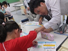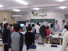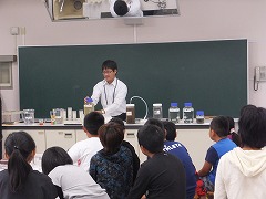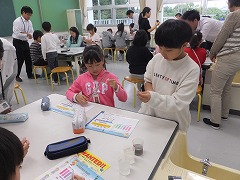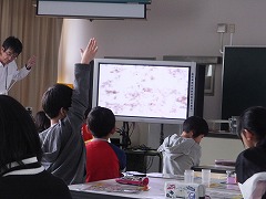 足もとの悪い中でしたが、愛知県庁・海部事務所・あま市から下水道課の方、愛知水と緑の公社の方の合計9名を講師にお招きし、4年生が下水について学びました。毎年、総合学習の環境教育の一環でお願いしています。最初に10分程度、家庭から出された汚水が浄化されて川に戻されるまでの様子をビデオで学びました。その後、川にいる微生物のクイズや水道水、洗濯水、習字で使った墨汁、ジュースなどの汚れ具合を特殊なキッドを使って調べました。見た目以上にジュースの汚れが大きいことに気づきました。また、きれいな川にしかすむことのできない魚がいることも教えていただきました。