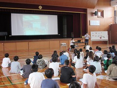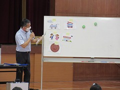 税金の集め方、使われ方、使い道の決め方など具体的な例を交えて、わかりやすく説明していただきました。途中、ビデオで“もし税金がなかったらどうなってしまうのか?“を見ました。その前と後では、消費税を払いたくないと考えた児童の数が変わったように思います。