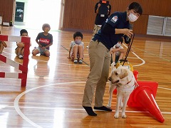 3年生が福祉実践教室を行いました。最初に体育館で福祉についての講話を全員で聞いた後、今年は、車いす、手話、点字、ガイドヘルプ、高齢者疑似体験、盲導犬の6つのグループに分かれて行いました。一つのグループが20人以下の少人数に分かれることができたため、しっかり体験活動を行えました。実際にハンディのある状態を体験することで多くの気づきがあったと思います。