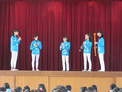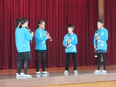 1月28日(土)に行われるアンサンブルコンテストのリハーサルを兼ねて、音楽部・音楽クラブによるリコーダーのミニ演奏会が行われました。音楽部・音楽クラブの児童は、日頃の練習の成果を発揮して、素晴らしい演奏を聞かせてくれました。演奏に聞き入る児童の姿が見られ、それぞれの演奏の後には大きな拍手が起こりました。